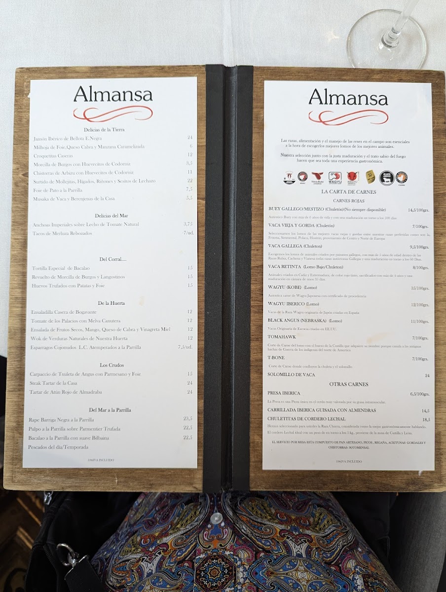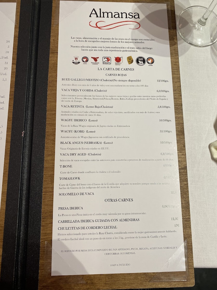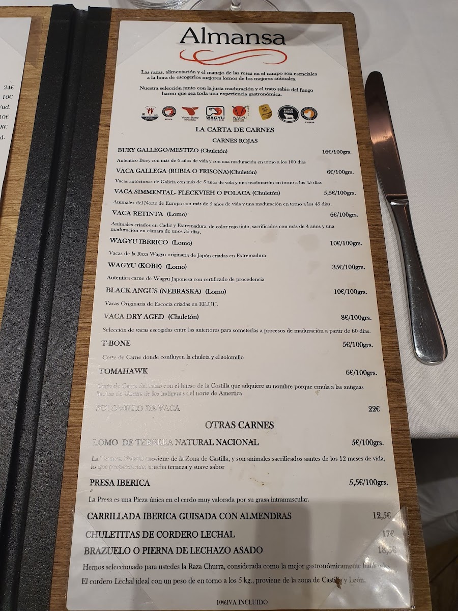 Welcome to Restaurante Almansa · Pasión & brasas, a culinary gem nestled in the heart of Seville. This eatery is a meat lover's paradise, renowned for its meticulously aged steaks and expertly grilled meats that tantalize the palate. Diners rave about the succulent Wagyu and Gallego Buey, both showcasing the rich flavors of Spanish beef, complemented by an impressive wine selection.